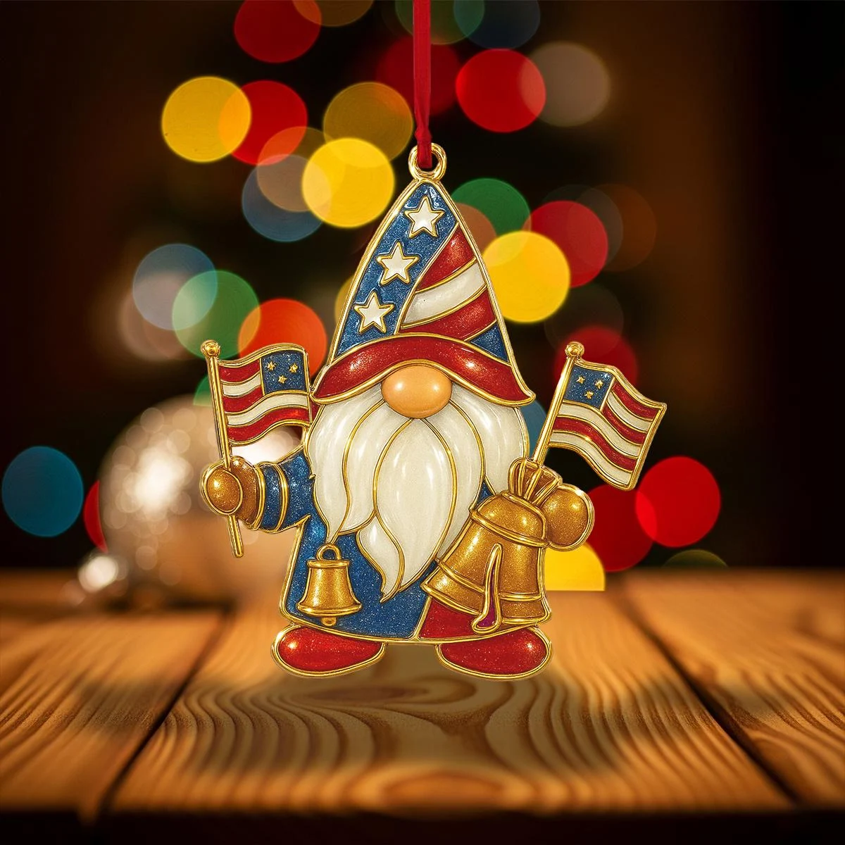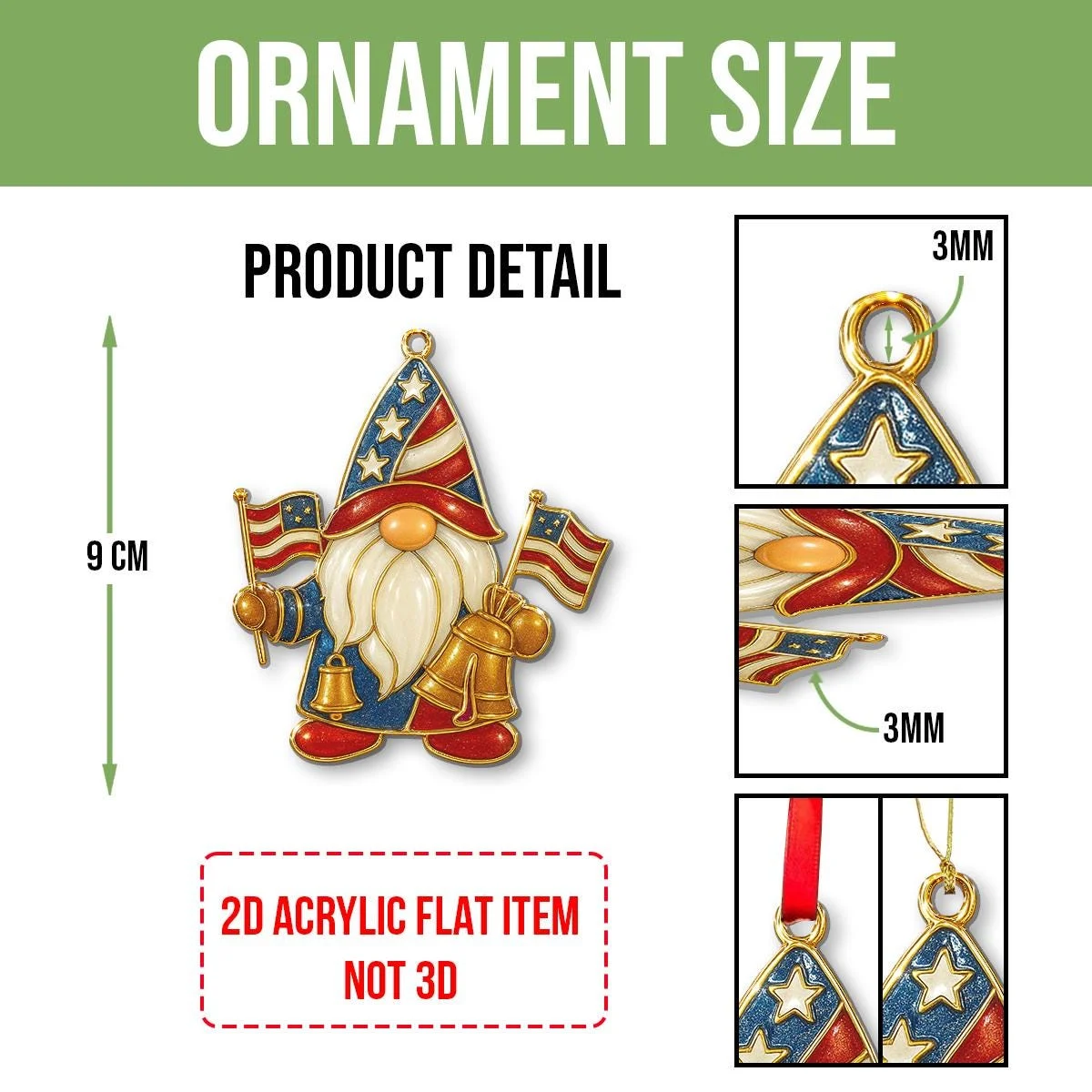 Custom Patriotic Gnome Ornament 2025 – Personalized Acrylic Christmas Tree Decoration – Americana 4th of July Holiday Decor – Family Gift Idea
