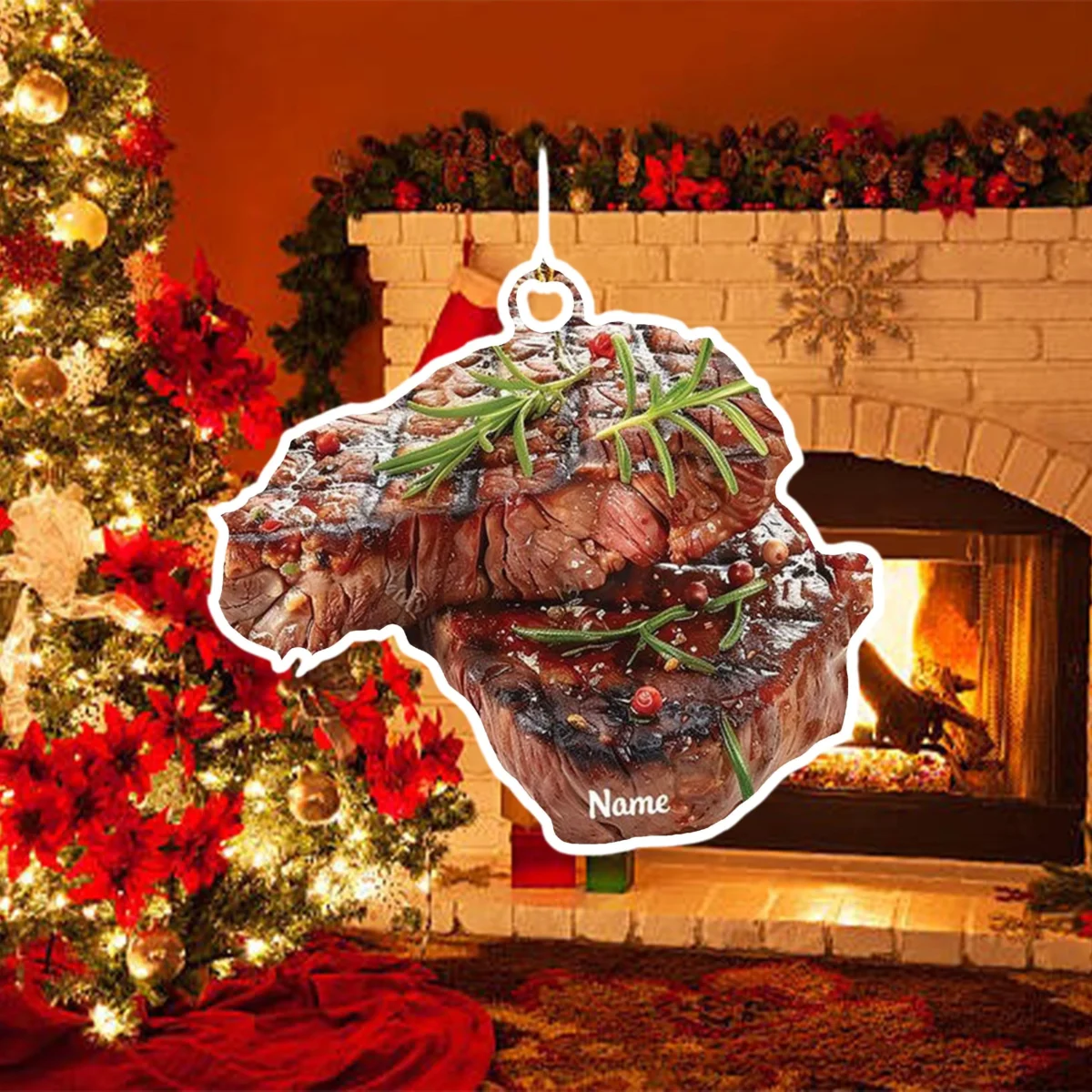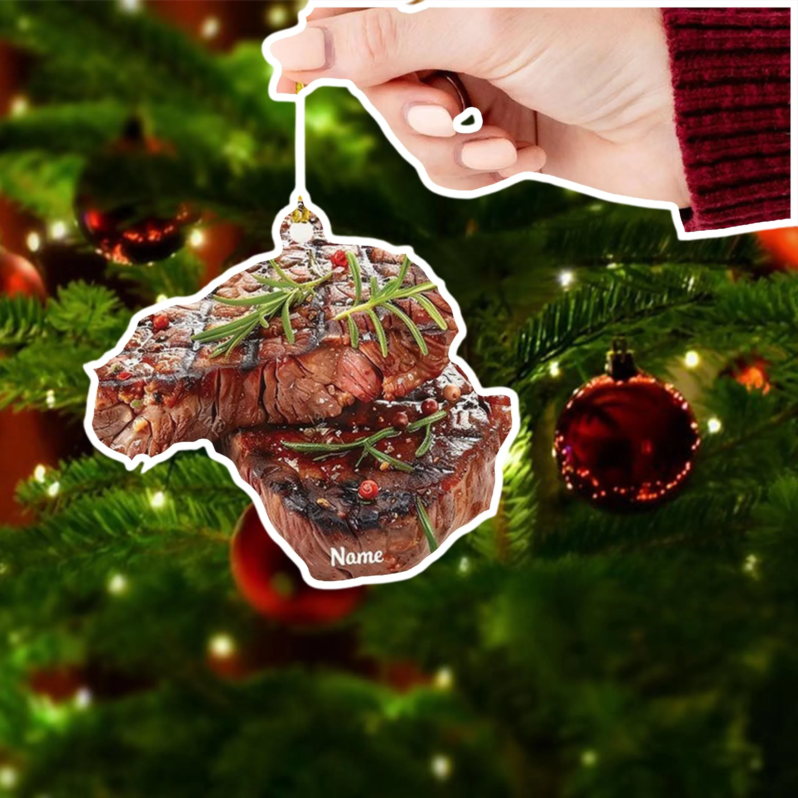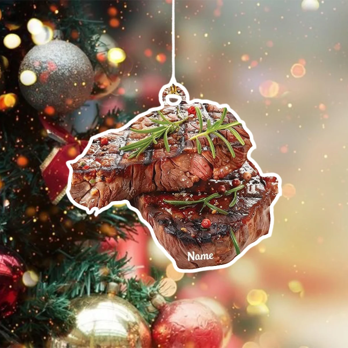 Personalized Steak Christmas Ornament – Custom BBQ Food Decoration – Funny Holiday Tree Keepsake – Unique Xmas Gift Idea for Meat Lovers 2025